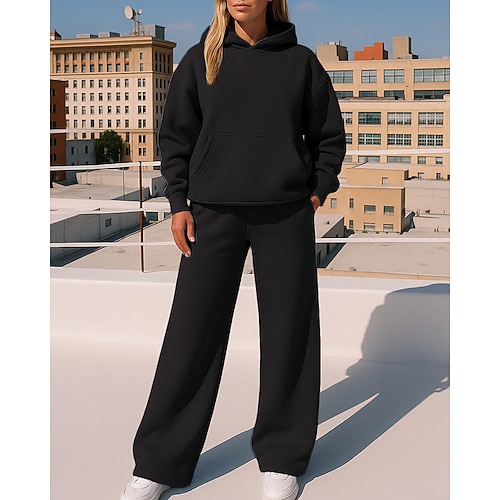 Per donna Tuta da 2 pezzi Felpa con cappuccio Lounge Set di tute da ginnastica Fascia Elastica Tinta unita Completo Abbigliamento Autunno Nero Rosa All'aperto Viaggio Sportivo Traspirante Manica Lunga