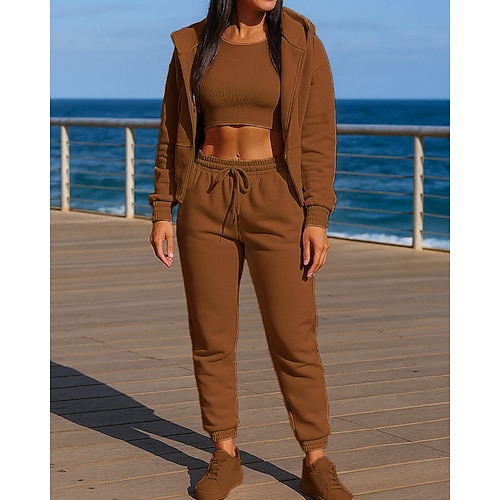 Per donna Tuta da Ginnastica Pantaloni da Tuta Abbigliamento sportivo Con cappuccio Tinta unita Completo Abbigliamento Autunno Inverno Nero Bianco All'aperto Viaggio Sportivo Di tendenza Manica
