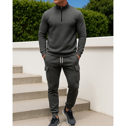 Per uomo Tuta da 2 pezzi Set di tute in pile Abiti da salotto Cerniera a un quarto Tinta unita Completo Abbigliamento Autunno Inverno Nero Bianco All'aperto Viaggio Sportivo cascante Caldo Manica