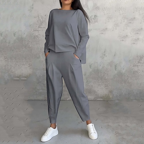 Per donna Set di tute e pullover Tuta da 2 pezzi Abiti da salotto con tasca Tinta unita Completo Abbigliamento Autunno Grigio scuro Nero Spandex Palestra Corsa Fitness Traspirante Manica Lunga Sport
