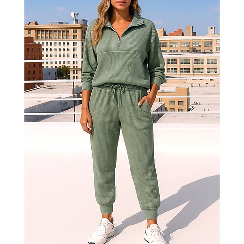 Per donna Tuta da Ginnastica Pantaloni da Tuta Abbigliamento sportivo Maglia a trecce Tinta unita Completo Abbigliamento Autunno Nero Bianco All'aperto Viaggio Sportivo Vita Alta Di tendenza Manica