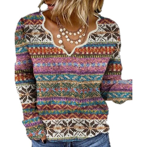 Per donna Blusa Fiore Moderno Boho Manica Lunga Scollo a V Top Regolari Ferie Uscire Stampato Blu Viola Arancione Estate