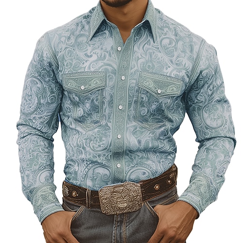 Per uomo Floreale intricato Fiori Camicia Camicia Western Camicia da cowboy Manica Lunga Vintage Retrò All'aperto Casuale Abbigliamento da lavoro Primavera Autunno Collo ripiegato Due tasche