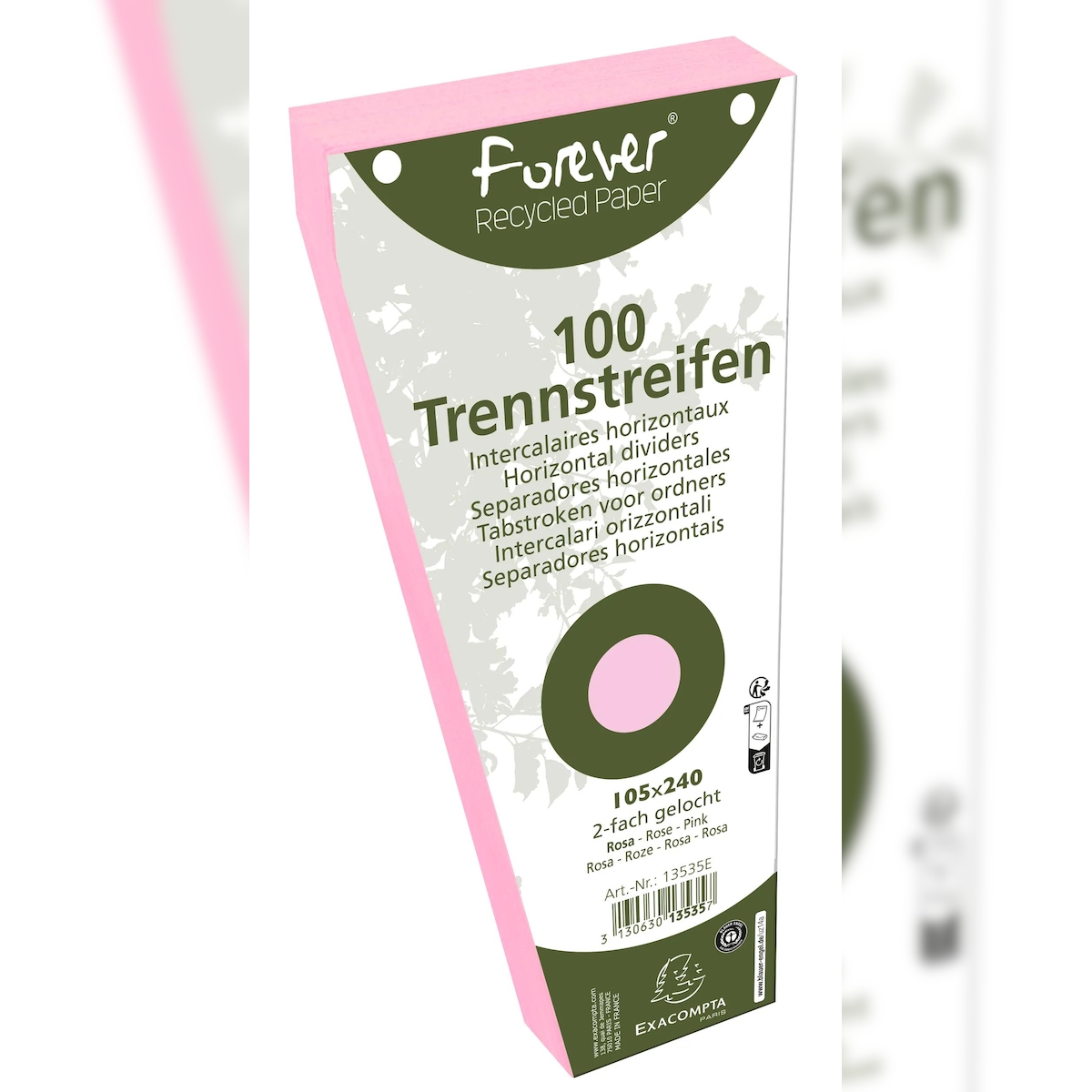 Exacompta 13535E 6x Packung mit 100 Trennstreifen, gelocht, trapezförmig aus Recycling-Papier 180g/qm, 105x240mm - Forever - Rosa