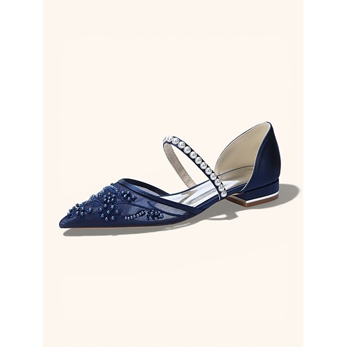 scarpe basse con cinturino posteriore, punta affilata e cristalli neri per damigelle d'onore – eleganti scarpe da sposa, da sera e da cerimonia in raso con tacco basso per donna