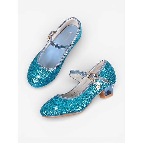 scarpe da damigella d'onore con glitter Mary Jane per bambini, con tacco basso, tomaia scintillante e cinturino con fibbia di sicurezza, eleganti scarpe da principessa per bambine, scarpe da damigella