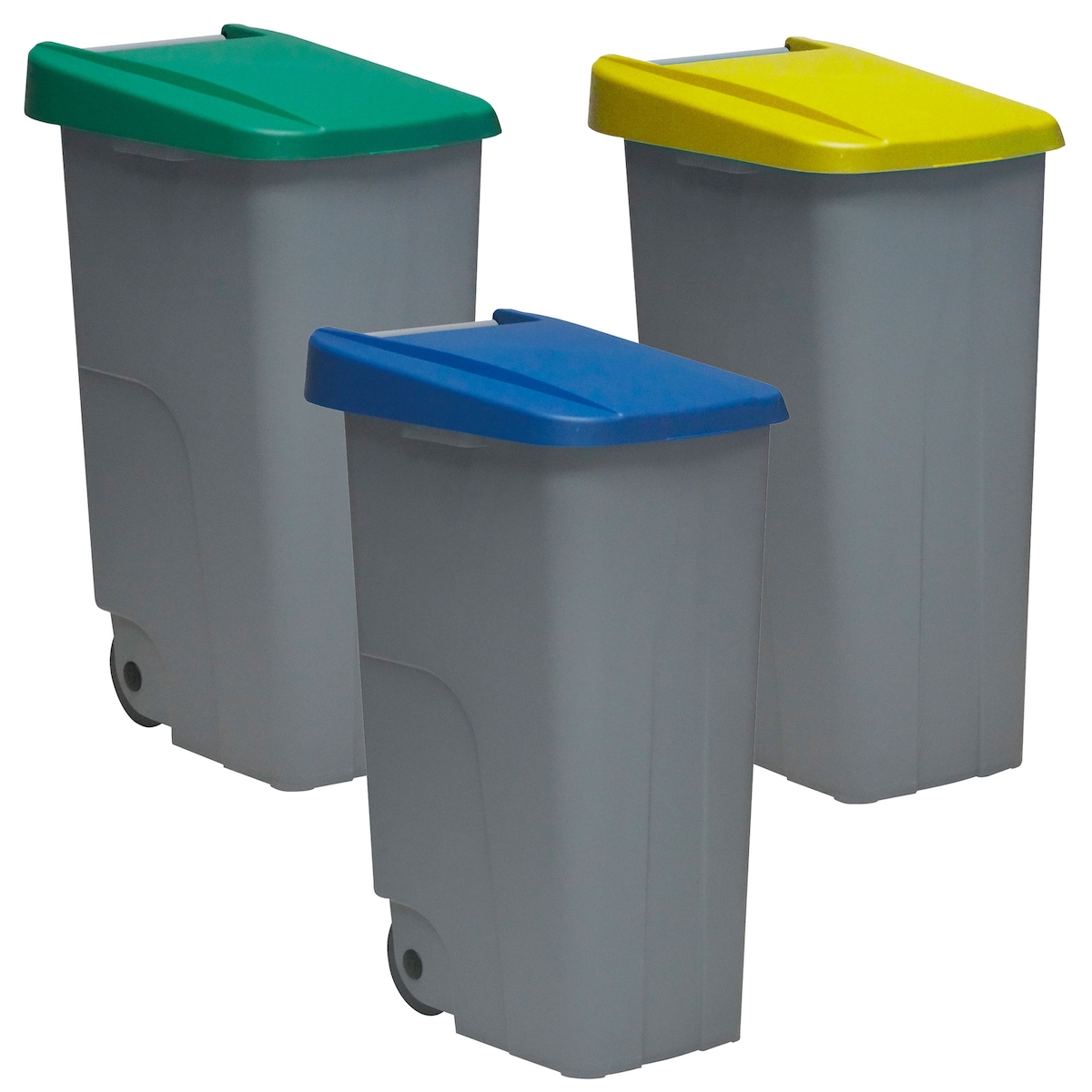 Denox Recycling-Set mit 3 geschlossenen Kunststoff-Müllbehältern, 255 l Gesamtkapazität, in Mehrfarbig