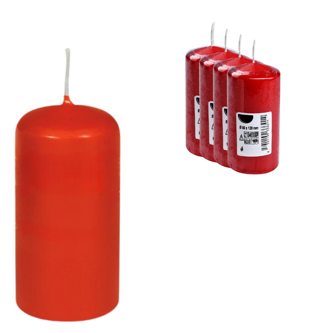 DeinPack Stumpenkerzen rot - 4 Stück Ø 6 cm- Höhe 12 cm Brenndauer: ca. 30 Stunden Hochwertige Stumpenkerze