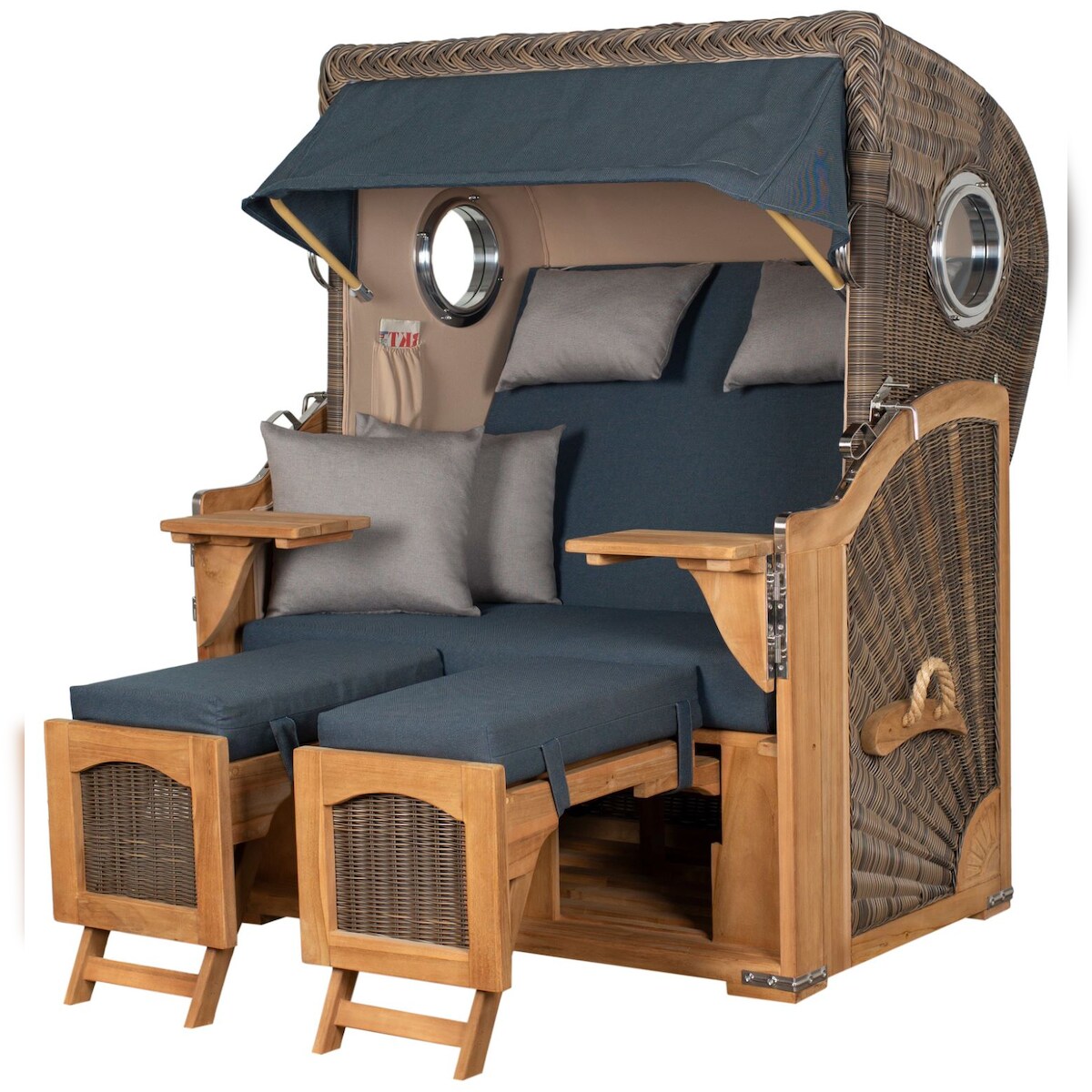 Mr. Deko Strandkorb - bene living - Ammersee Teak Bullauge - PE shell - Modell 522 - inkl. Liftersystem