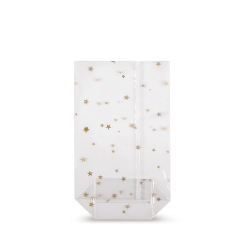 Pack4Food24 1000 Kreuzbodenbeutel Gebäck- & Präsentbeutel 225x190mm glasklar mit Weihnachtsmotiv "Goldene Sterne"
