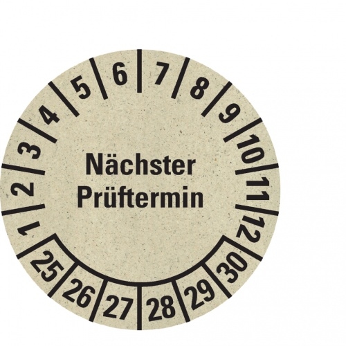 Dreifke® Prüfplakette Nächster Prüftermin 25-30, natur, Graspapier, Ø 30mm, 500 Stk.