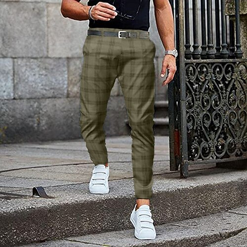 Per uomo Pantaloni Chinos Pantaloni jogger Pantaloni eleganti scozzesi Tasca Griglia Morbido All'aperto Casuale Quotidiano Affari Moda Streetwear Blu Nero