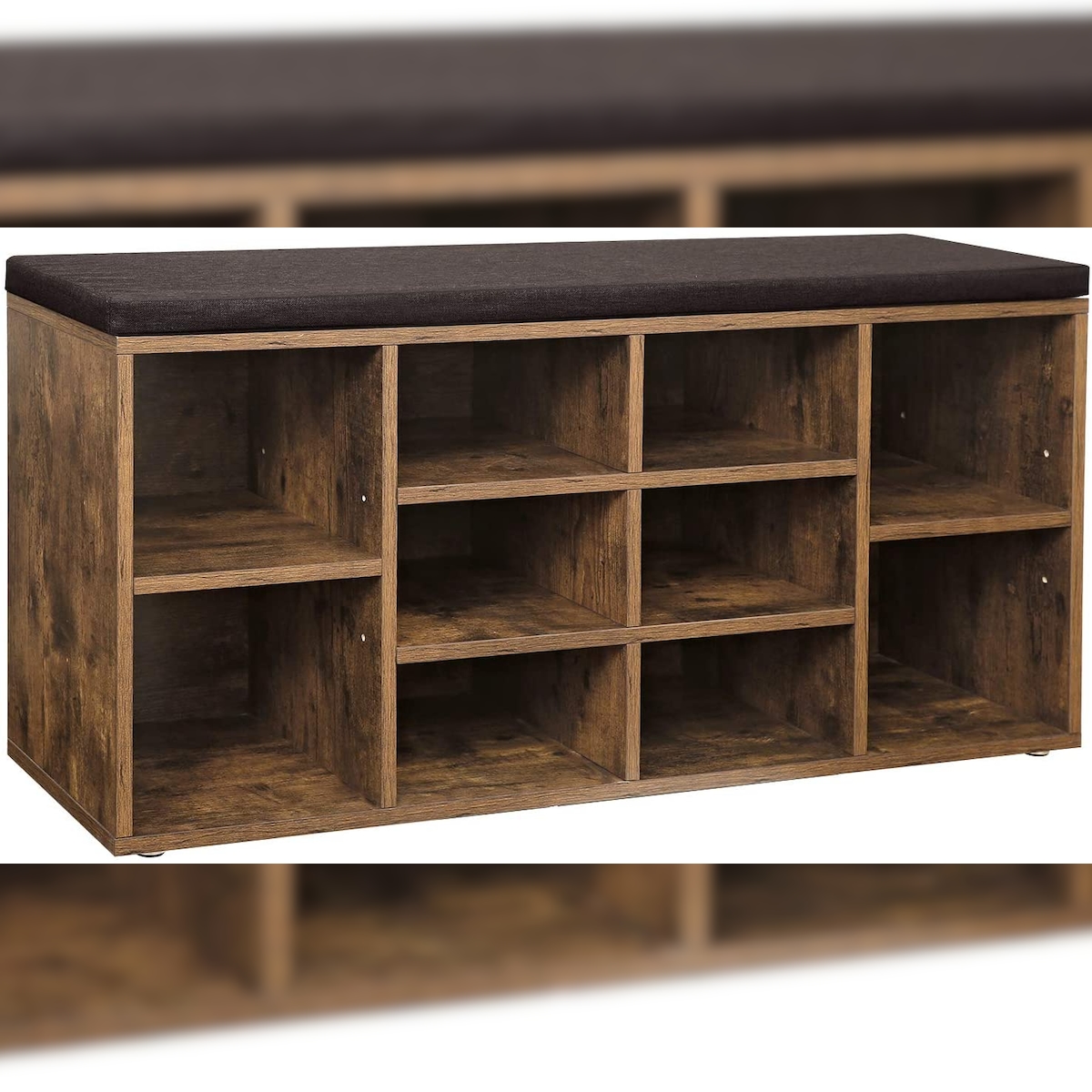 UAC Schuhbank Sitzbank mit Sitzkissen 104 x 30 x 48 cm, 10 Fächer, bis 150 kg belastbar, mit Polsterung, abnehmbare Bezug, Schuhregal, dunkelbraun