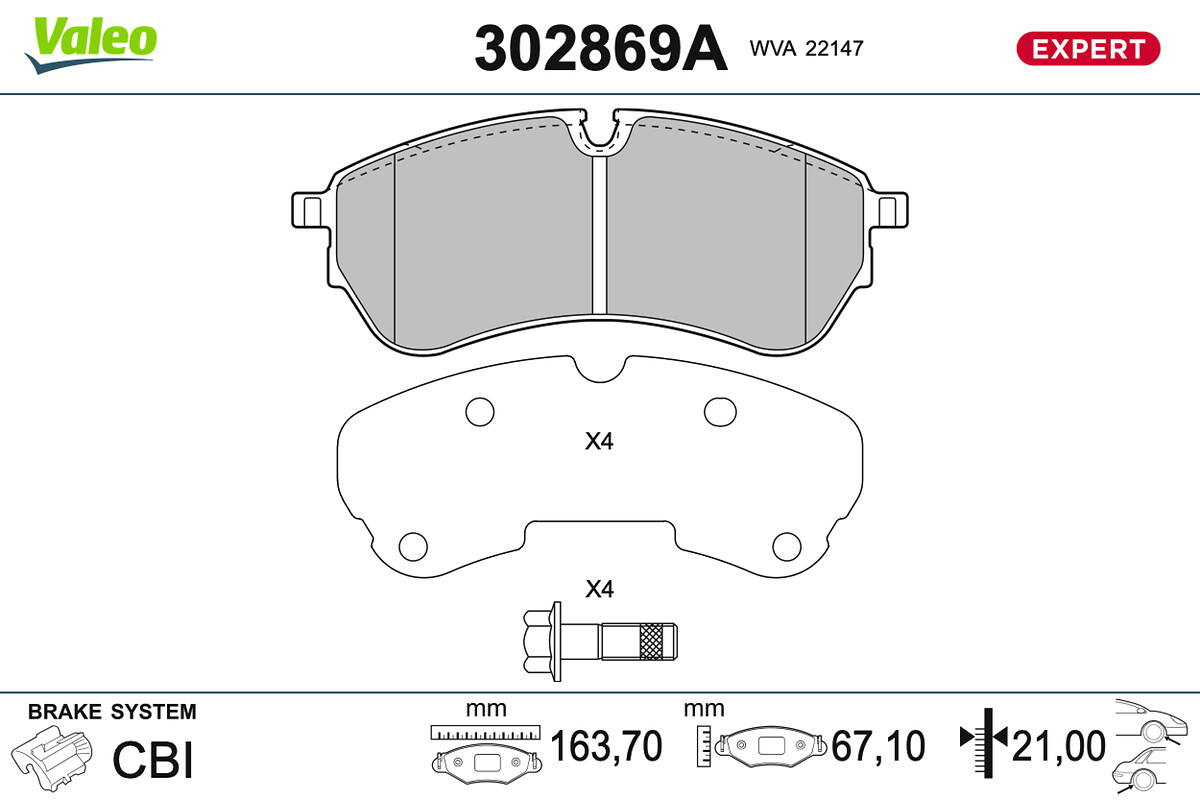 VALEO Bremsbelagsatz, Scheibenbremse 302869A vorne rechts links für VW MAN 65508206000 65.50820-6000 2N0698151