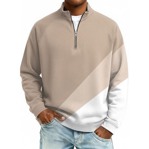 Per uomo Blocco di colori Polo con zip Manica Lunga Magliette polo Colletto alla coreana Casual Scuola Athleisure Ferie Abbigliamento quotidiano Stampa 3D Polo con cerniera a un quarto Primavera