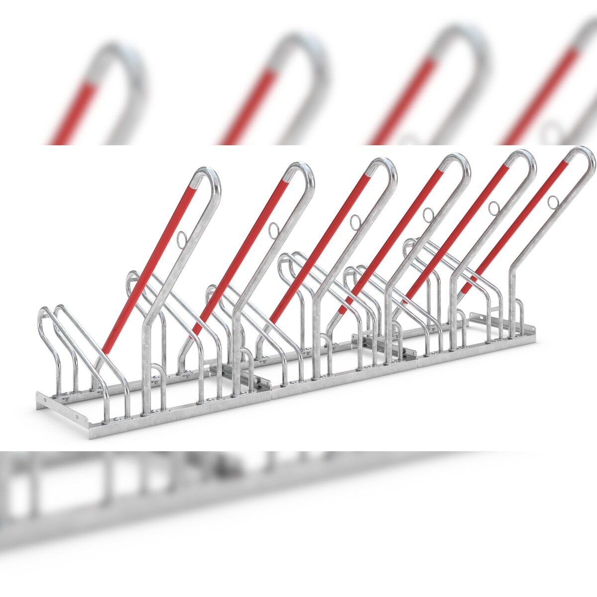 Anlehnparker 2506 einseitig | Fahrradständer für 6 Fahrräder | erweiterbar zur Freiaufstellung | Abwechselnde Hoch-/Tiefeinstellung | mit Anlehnbügel