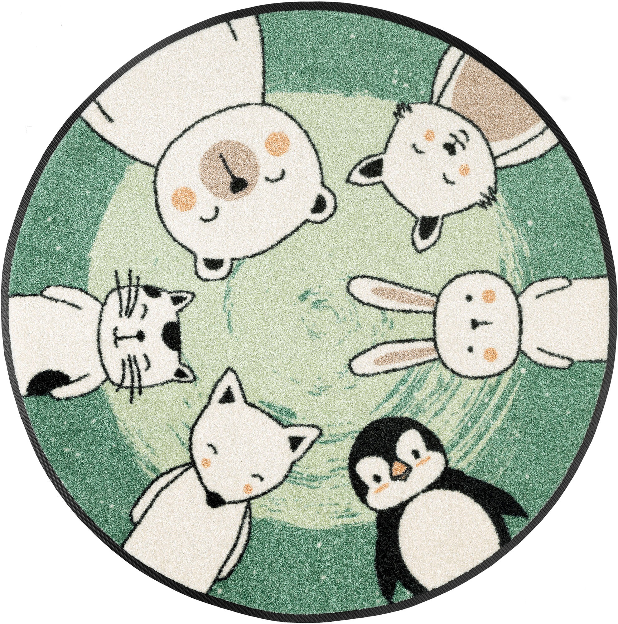 Teppich "Animal Friends", grün, B:85cm H:7mm L:85cm Ø:85cm, Polyamid, WASH+DRY BY KLEEN-TEX, Teppiche