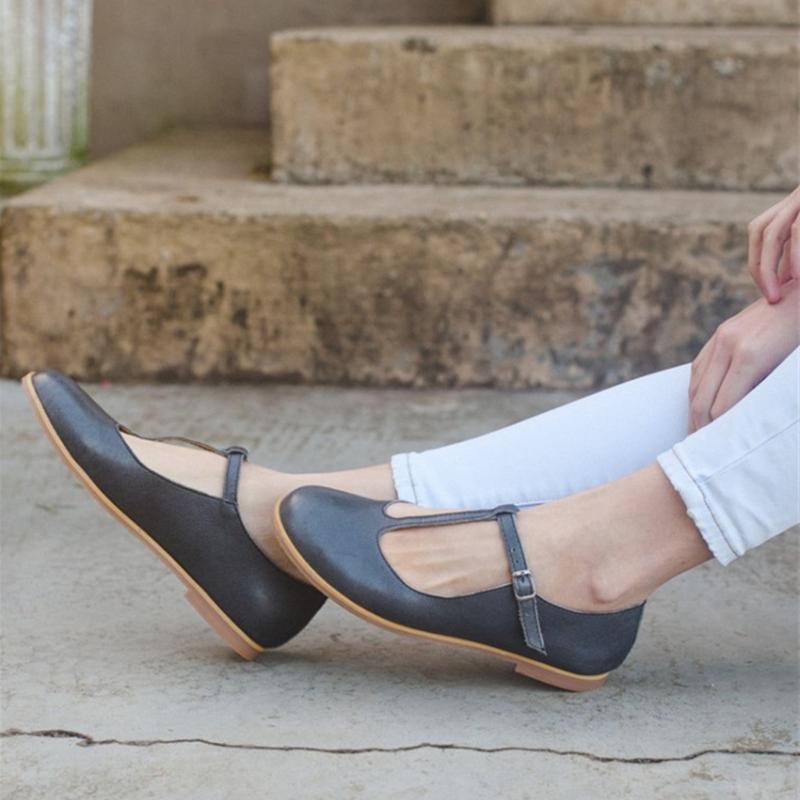 Comfortable Women's Flats Shoes Retro Handmade T-straps Vintage Casual Flat Loafer Shoes Ladies Large Size 11 45 47 48 Brand cm beige