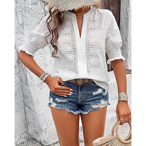 Per donna Blusa Semplice Elegante Casual Mezza Manica Scollo a V Top Regolari Quotidiano Ferie Uscire Traforato Blu Bianco Verde chiaro Rosa Estate Primavera Autunno