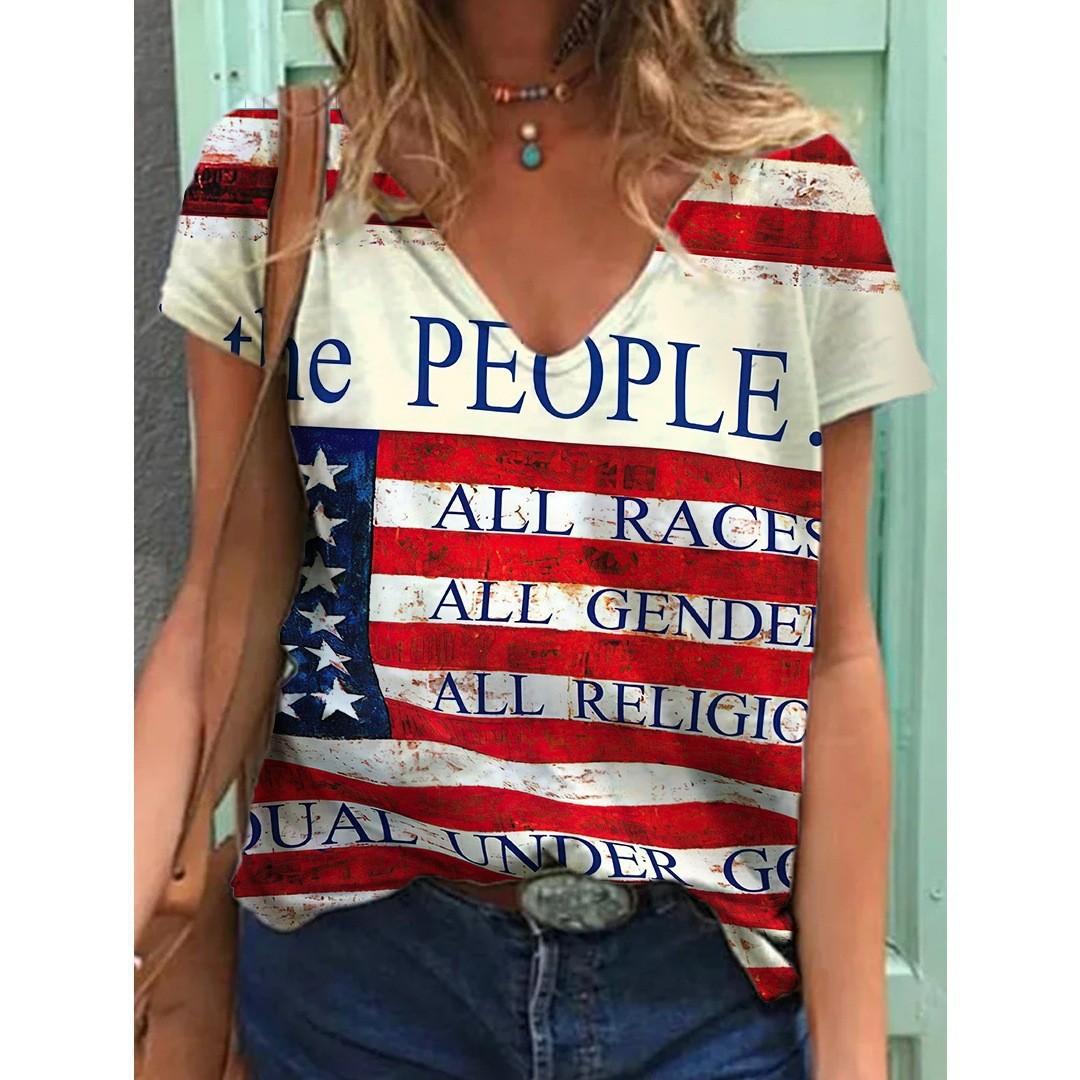 Summer V-neck 3D American Independence Day Printed Top Fashionable Casual Short Sleeved Women's T-shirts cm