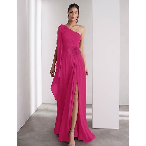 Abito da sera A spalla unica A-Line chiffon elegante abito formale lunghezza del pavimento senza maniche arricciato scialle