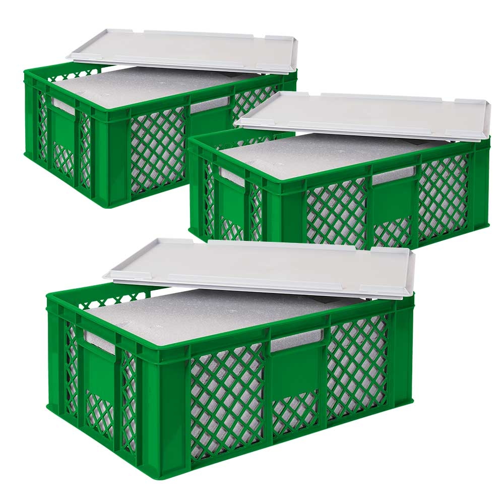 BRB 3x EPS Thermobox in Stapelkorb mit Deckel, LxBxH 600x400x240 mm, grün