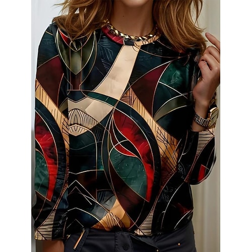 Per donna Maglietta Grafico Geometrico Vintage Moda Elegante Manica Lunga Girocollo Top Regolari Quotidiano Weekend Stampato Marrone Estate Primavera Autunno