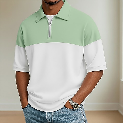 Per uomo Polo con zip Maglia da golf Casuale Ferie Bavero Zip a un quarto Manica Corta Moda Essenziale Semplice Blocco di colore Zip a un quarto Estate Primavera Primavera Estate Vestibilit