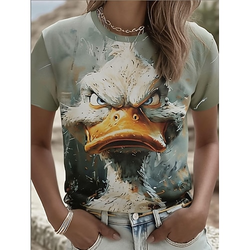 Per donna Maglietta Grafico Animale Vintage Elegante Classico Manica Corta Girocollo Top Regolari Quotidiano Weekend Stampato Grigio Estate Primavera Autunno