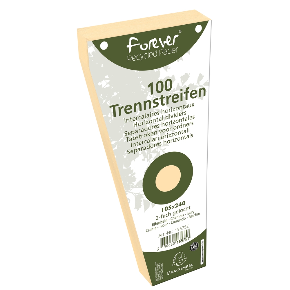 Exacompta Packung mit 100 Trennstreifen gelocht aus Recycling-Karton 180g/qm, 105x240mm - Forever