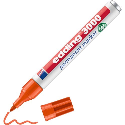 edding 3000 Permanentmarker 100% Recycelt Mittel Rundspitze 1,5 - 3 mm Orange Nachfüllbar Wasserbeständig