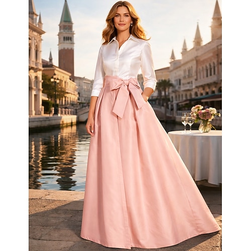 Linea ad A Lunghezza al pavimento Abito Camicia Abito da invitata a nozze Abito Formale Abito da cerimonia per signora Manica 3/4 Colletto a Camicia Carino Minimalista Serata Formale Taffetà con