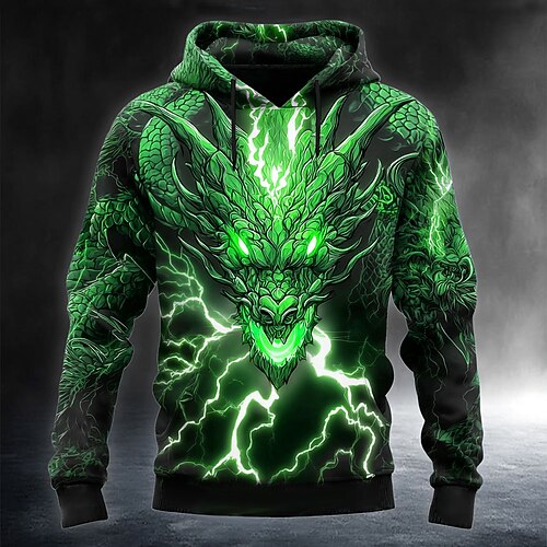 Per uomo Drago Stampa 3D Felpa con Cappuccio Felpa 3D Fantasia Manica Lunga Girocollo Regalo Club Abbigliamento casual alla moda Giallo Rosso Blu Verde Coulisse Autunno Inverno progettista S M L XL