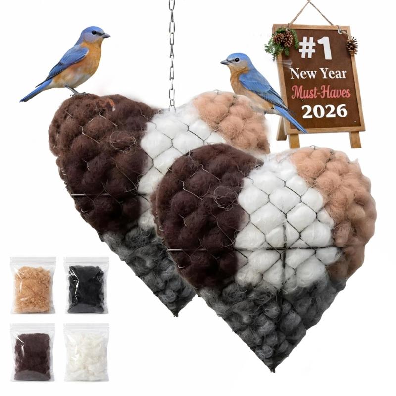 2 Stück Outdoor Vogelhaus Zubehör Herz Design Mit Austauschbarer Faser Für Gartenvögel