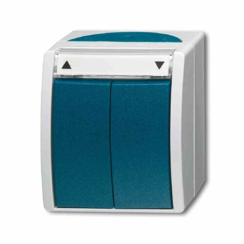 Busch-Jaeger OCEAN Jalousieschalter, Aufputz, grau/blau-grün, matt, IP44, Wippe, Textfeld/Beschriftungsfläche, 1p