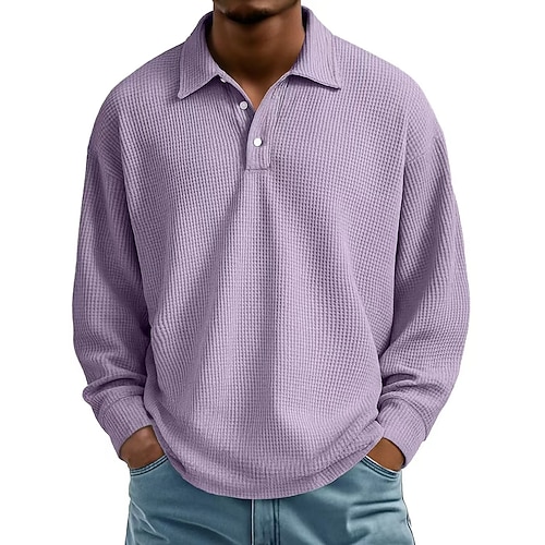 Per uomo Magliette Polo a Nido d'Ape Maglia da golf Lavoro Casuale Bavero Manica Lunga Essenziale Moderno Semplice Trama Bottoni Primavera Autunno Vestibilità regolare Nero Bianco Blu marino Grigio