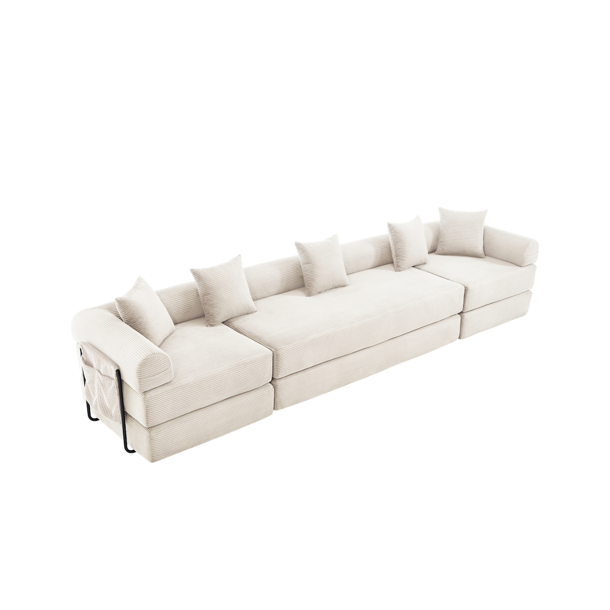 Merax Großes Familiensofa, modular als Schlafsofa und Wohnlandschaft nutzbar, frei kombinierbare Module, Seitentasche, Beige