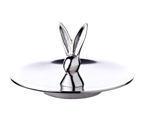 EDZARD Keksschale Hase Louis (Durchmesser 15 cm, Höhe 9 cm), Aluminium vernickelt