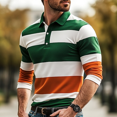 Per uomo A righe Polo da rugby Manica Lunga Magliette polo Camicie con Colletto Abbigliamento Sportivo Casual Scuola All'aperto Athleisure Stampa 3D Primavera Autunno Inverno Verde