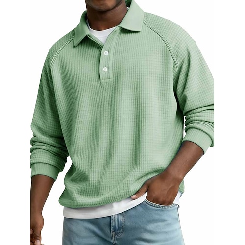 Per uomo Magliette Polo a Nido d'Ape Polo Formale Affari Colletto Polo a Coste Manica Lunga Moda Tinta unica Bottoni Puro Autunno Primavera Autunno Vestibilità comoda Nero Verde Chiaro Verde Blu