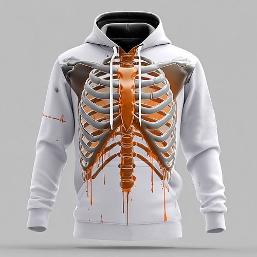 Per uomo 3D Scheletro Felpa con Cappuccio Felpa Punk Esagerato Gotico Casual Manica Lunga Girocollo Con Cappuccio Club Abbigliamento casual alla moda azzurro cielo Rosso Blu Viola Arancione Coulisse