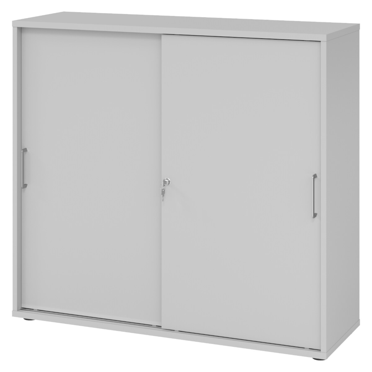 bümö Schiebetürenschrank 3OH - Aktenschrank abschließbar, Sideboard Schrank mit Schiebetüren in grau, Bügelgriff - Büroschrank aus Holz mit