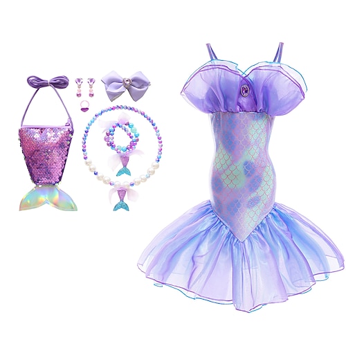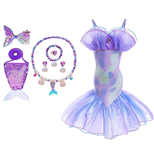 La sirenetta, la sirenetta, la coda della sirena, il vestito da principessa acquamarina, il vestito da Halloween, il costume da cosplay, il costume da festa a tema, il film cosplay, il cosplay per ragazze, il carnevale per bambini, il travestimento