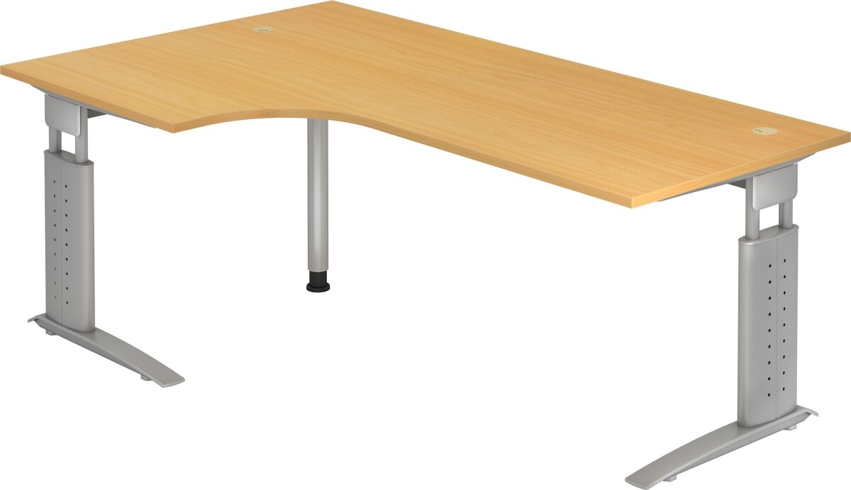 Hammerbacher Winkeltisch C-Fuß 200x120cm 90 Grad Buche/Silber