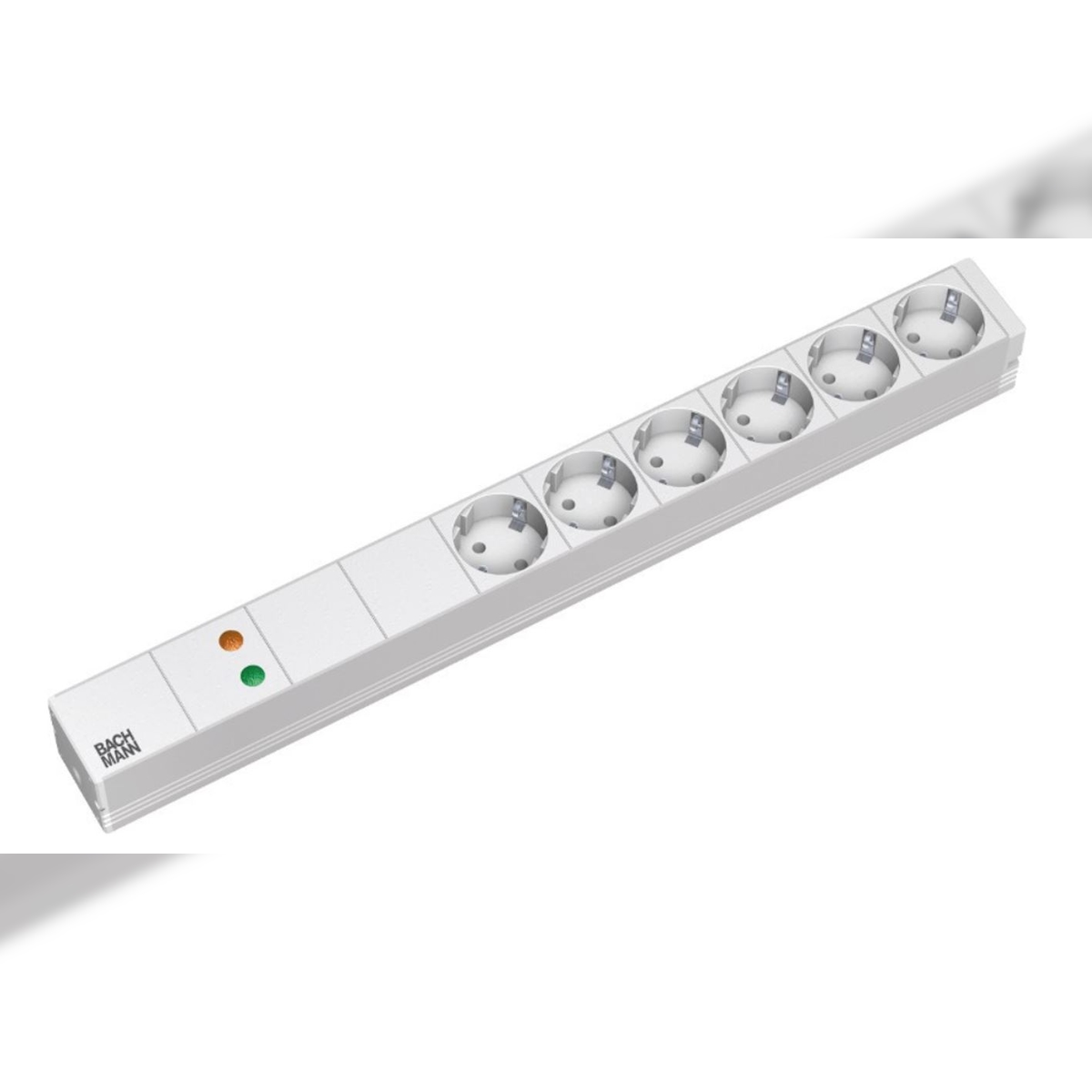 Bachmann 19"-Steckdosenleiste ALU 1HE ÜSS, 6-fach 35°, grau, 2,0m, ohne Schalter