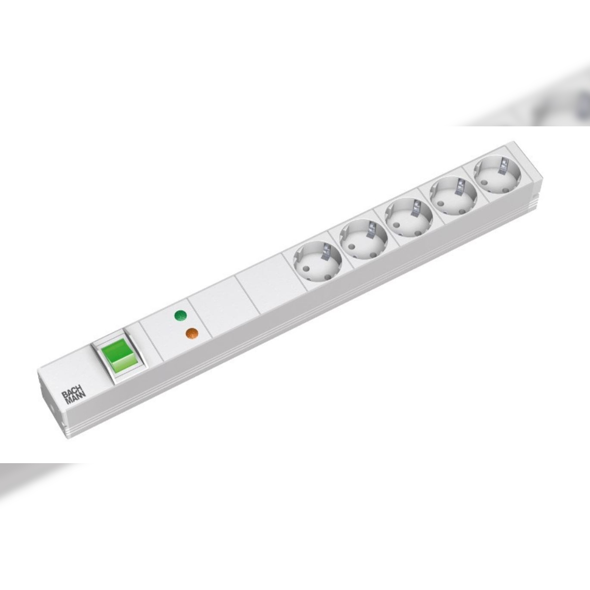 Bachmann 19"-Steckdosenleiste ALU 1HE ÜSS, 5-fach 35°, grau, 2,0m, mit Schalter