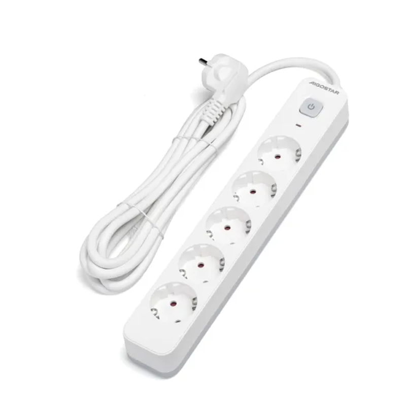Aigostar Lines Steckdosenleiste 5-fach 3G 1,5 mm2 3M MAX.3680W mit quadratischem Schalter weiß