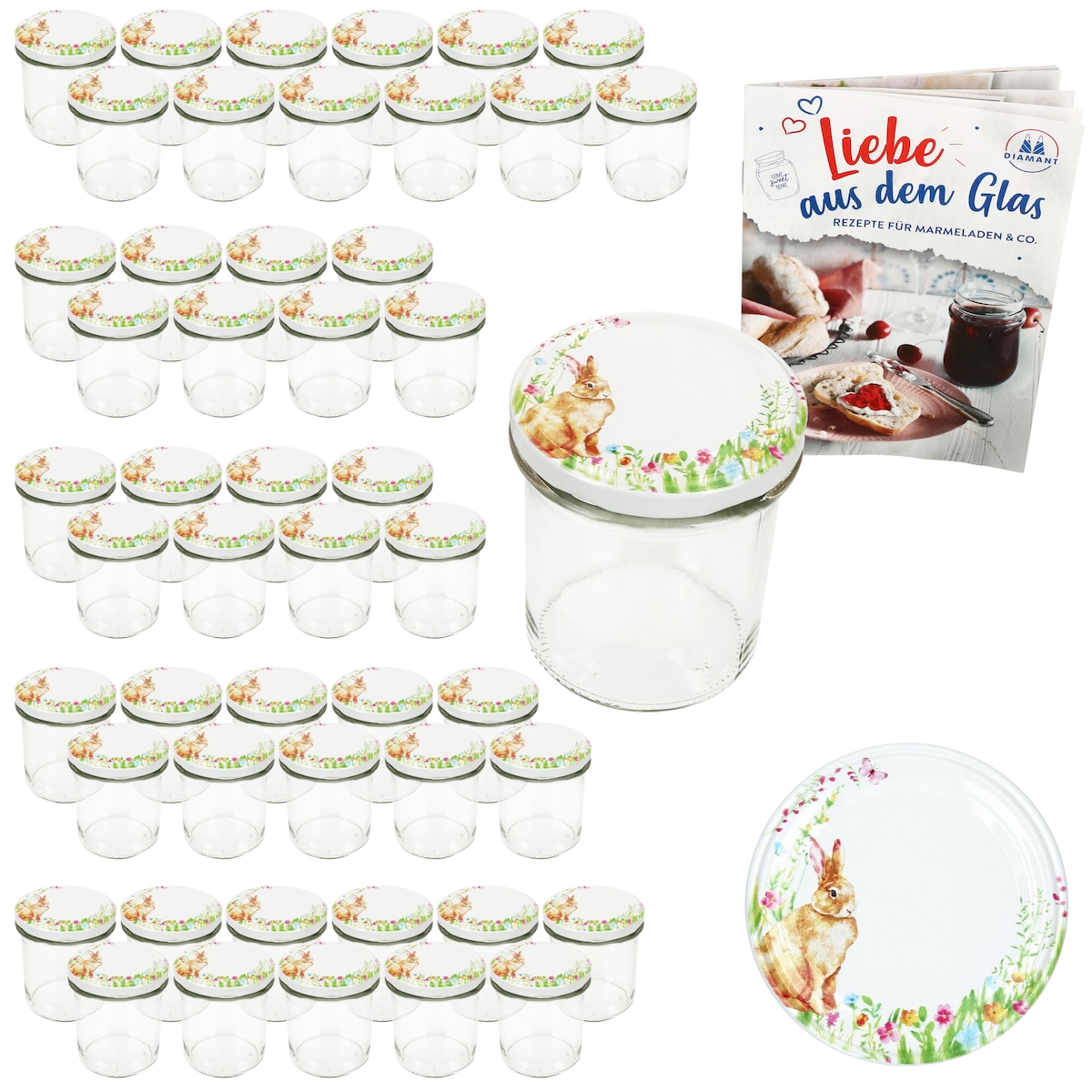 50er Set Sturzglas 350ml Einmachglas Osterfreude Deckel Ostern Hase Rezept-Heft