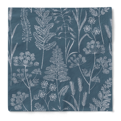 Mank Tissue Serviette Benjamin in Blaugrau, 33 x 33 cm, 3-lagig, 100 Stück - Gräser Sträucher Herbst