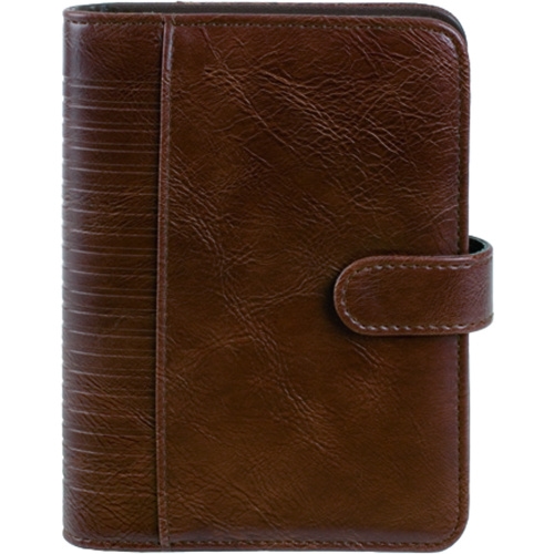 Jüscha bind Systemplaner A5 aus braunem Lederimitat mit Druckknopfverschluss, Einsteckfach, Visitenkartenfächern, inkl. Office-Einlage, ohne Kalender, 15601
